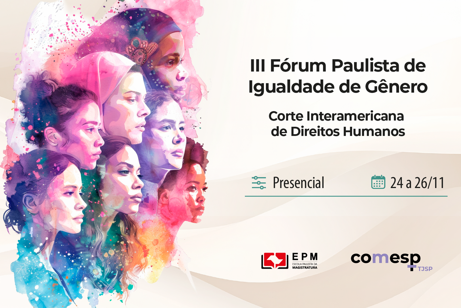 Nos dias 24, 25 e 26 de novembro será realizado na Escola Paulista da Magistratura (EPM) o 3º Fórum Paulista de Igualdade de Gênero: Corte Interamericana de Direitos Humanos, em parceria com a Coordenadoria da Mulher em Situação de Violência Doméstica e Familiar do Poder Judiciário do Estado de São Paulo (Comesp), o Núcleo Estratégico de Demandas de Direitos Fundamentais (Neddif) e a Unidade de Monitoramento das Decisões da Corte Interamericana de Direitos Humanos do Tribunal de Justiça de São Paulo (UMF).