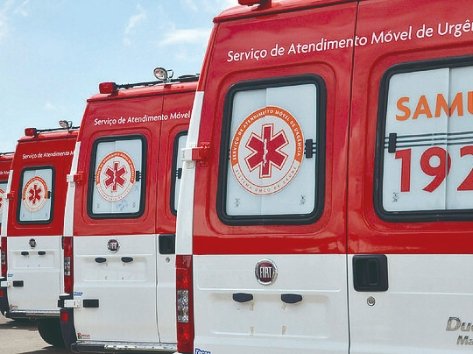 Foto das ambulâncias do SAMU estacionadas.