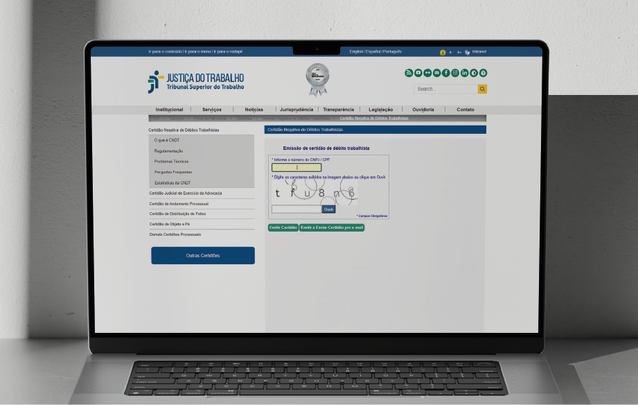 O procedimento é simples: basta informar o número do CPF ou CNPJ. Se não houver débitos registrados no Banco Nacional de Devedores Trabalhistas (BNDT), o sistema emite automaticamente a certidão negativa. Caso haja pendências, é gerada uma certidão positiva.