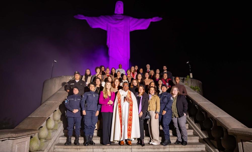 Mesmo sob neblina e frio, o maior cartão postal do país, o monumento Cristo Redentor, foi iluminado pela cor lilás às 20h de quinta-feira, dia 7 de agosto, data que marca 19 anos da Lei Maria da Penha. A cerimônia integrou a campanha “Agosto Lilás”, uma ação que busca a conscientização sobre a violência contra meninas e mulheres. A iniciativa contou com a participação de representantes da Coordenadoria Estadual da Mulher em Situação de Violência Doméstica e Familiar (Coem) do Tribunal de Justiça do Rio de Janeiro, Polícia Militar, Patrulha Maria da Penha, Secretaria de Estado da Mulher, entre integrantes da rede apoio às mulheres vítimas de violência, e do Santuário Arquidiocesano Cristo Redentor.