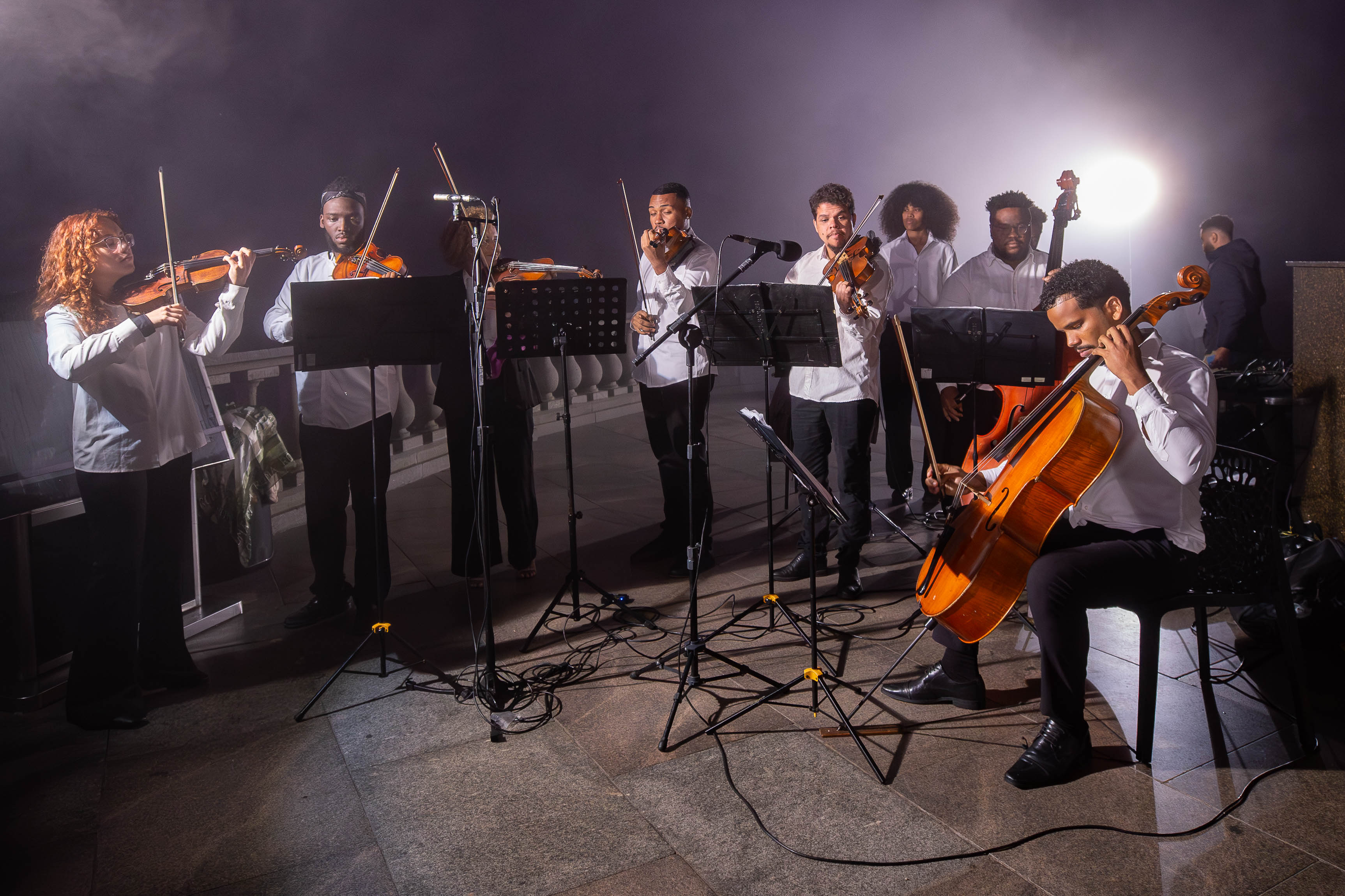 Músicos da Orquestra Sinfônica Jovem do Estado do Rio de Janeiro tocaram obras de Carlos Gomes, Milton Nascimento e Adoniran Barbosa