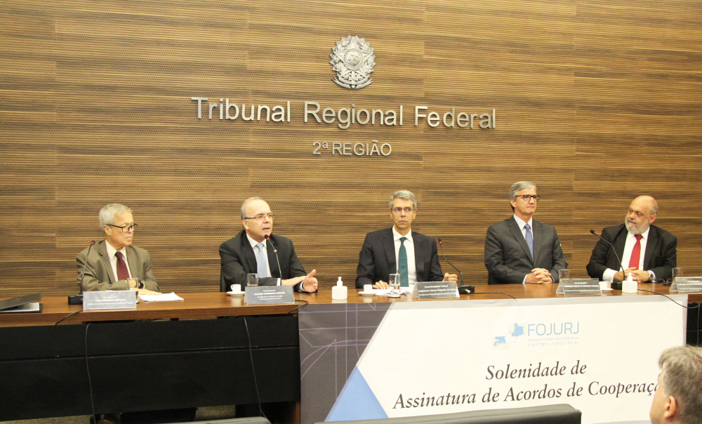 Na pauta da reunião estavam as assinaturas de acordos de cooperação, que foram realizadas em cerimônia também com a presença do presidente do TRF2, desembargador federal Guilherme Calmon; do presidente do TRE, Henrique de Andrade Figueira; do presidente do TRT1, desembargador Cesar Marques Carvalho; da corregedora regional da 2ª Região, desembargadora federal Leticia De Santis Mello; do presidente do Núcleo de Cooperação Judiciária do TJRJ, desembargador Alexandre Freitas Câmara; do corregedor do TRT1, desembargador Marcelo Augusto Souto de Oliveira; do juiz auxiliar da Corregedoria Geral de Justiça, Marcelo Souto de Oliveira, que representou o corregedor-geral de Justiça Marcus Pinto Basílio; das juízas Fernanda Xavier de Brito, auxiliar da Presidência do TJRJ, e Maria Thereza da Costa Prata, auxiliar da Presidência do TRT1; e do juiz federal auxiliar da Presidência do TRF2, Alfredo Jara Moura.
