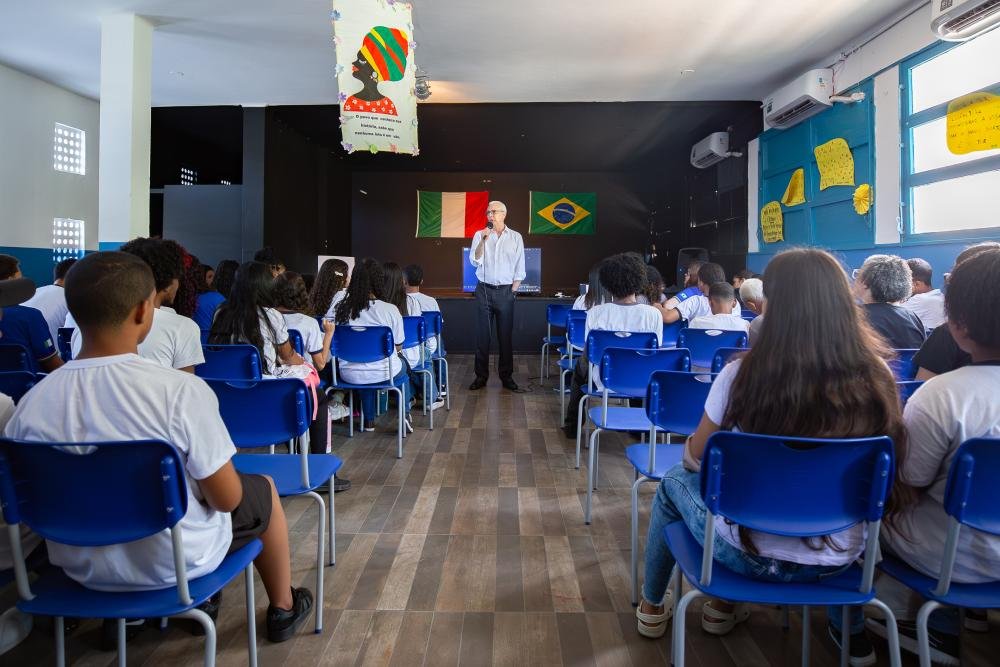 A manhã desta segunda-feira, 6 de abril, não seguiu o roteiro comum de volta às aulas para os alunos do Colégio Estadual José Bonifácio – Intercultural Brasil-Itália, no bairro do Fonseca, em Niterói. Entusiasmados e cheios de energia, os jovens se reuniram no auditório da escola para uma atividade do Projeto Letrartes: Letras e Artes Pela Paz em Casa, comandada pelo desembargador Wagner Cinelli, idealizador e coordenador do projeto.