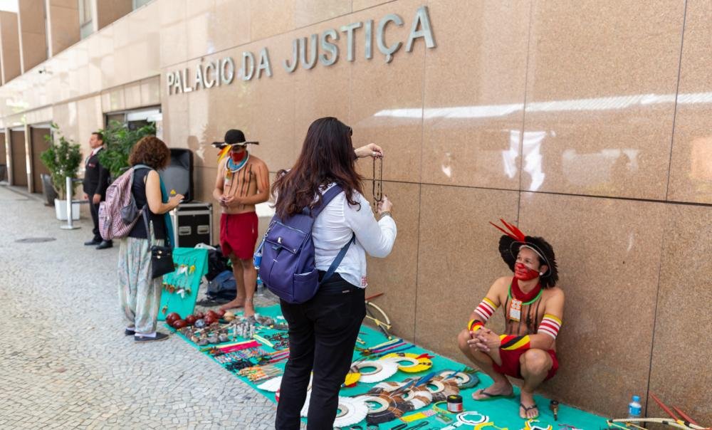 Txow-Tata, que, traduzindo, significa “ancião que fala”, conta que já vem ao Rio de Janeiro desde 2014 para fazer apresentações em colégios, realizar pajelanças e participar de feiras culturais. Está sendo a segunda vez que ele expõe seus artesanatos no Palácio da Justiça.