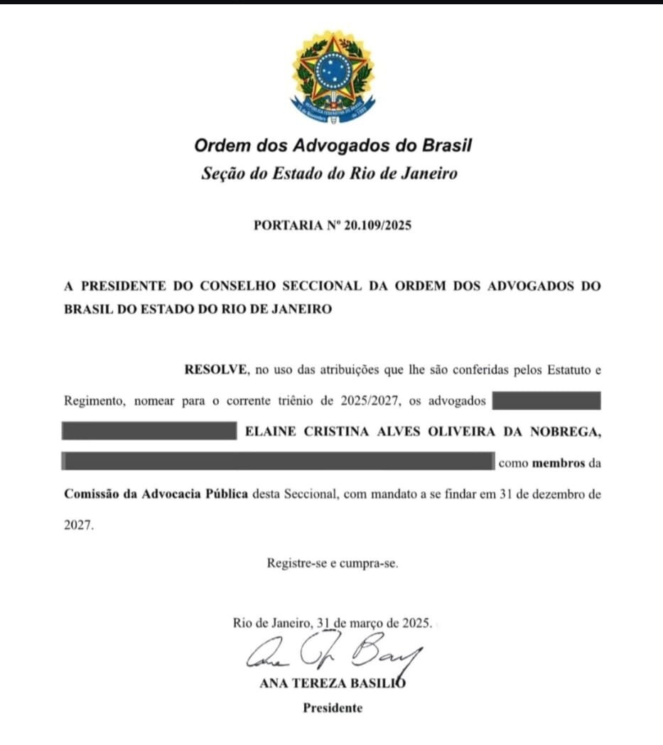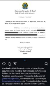 Membro da Comissão da Advocacia Pública da Seccional Rio de Janeiro