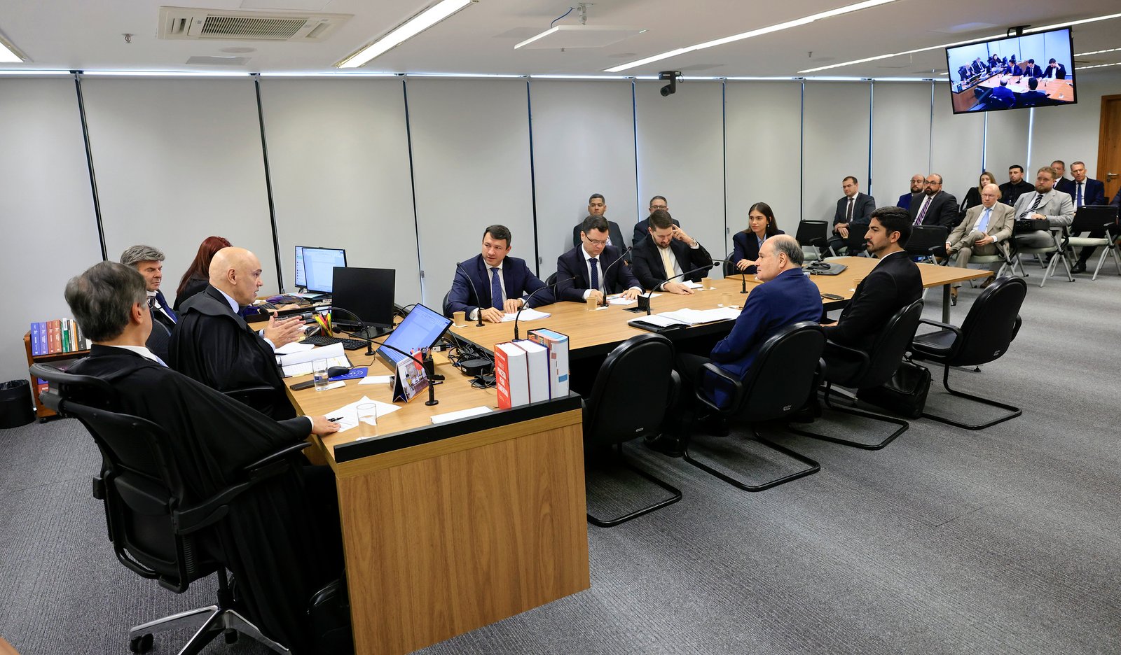 Além do ministro Alexandre de Moraes, relator da ação penal, também acompanharam a audiência o ministro Luiz Fux e o procurador-geral da República, Paulo Gonet. Os participantes da acareação estiveram acompanhados dos advogados.