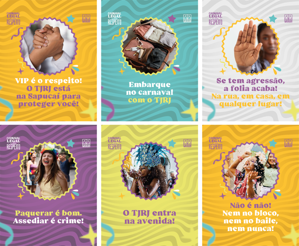 O Tribunal de Justiça do Estado do Rio de Janeiro (TJRJ) inicia a campanha “Carnaval Legal é com Respeito”, que acontecerá de 26 de fevereiro a 9 de março, com ações voltadas à conscientização e ao combate à violência contra a mulher durante o carnaval. A campanha inclui materiais de divulgação interativos, como adesivos, banners e leques com QR Codes que terão informações e canais de denúncia, além de iniciativas específicas tanto na Marquês de Sapucaí quanto no carnaval de rua. A proposta é reforçar a importância do respeito e da segurança para todos os foliões. Áudios com informações sobre os direitos da mulher também serão disponibilizados.