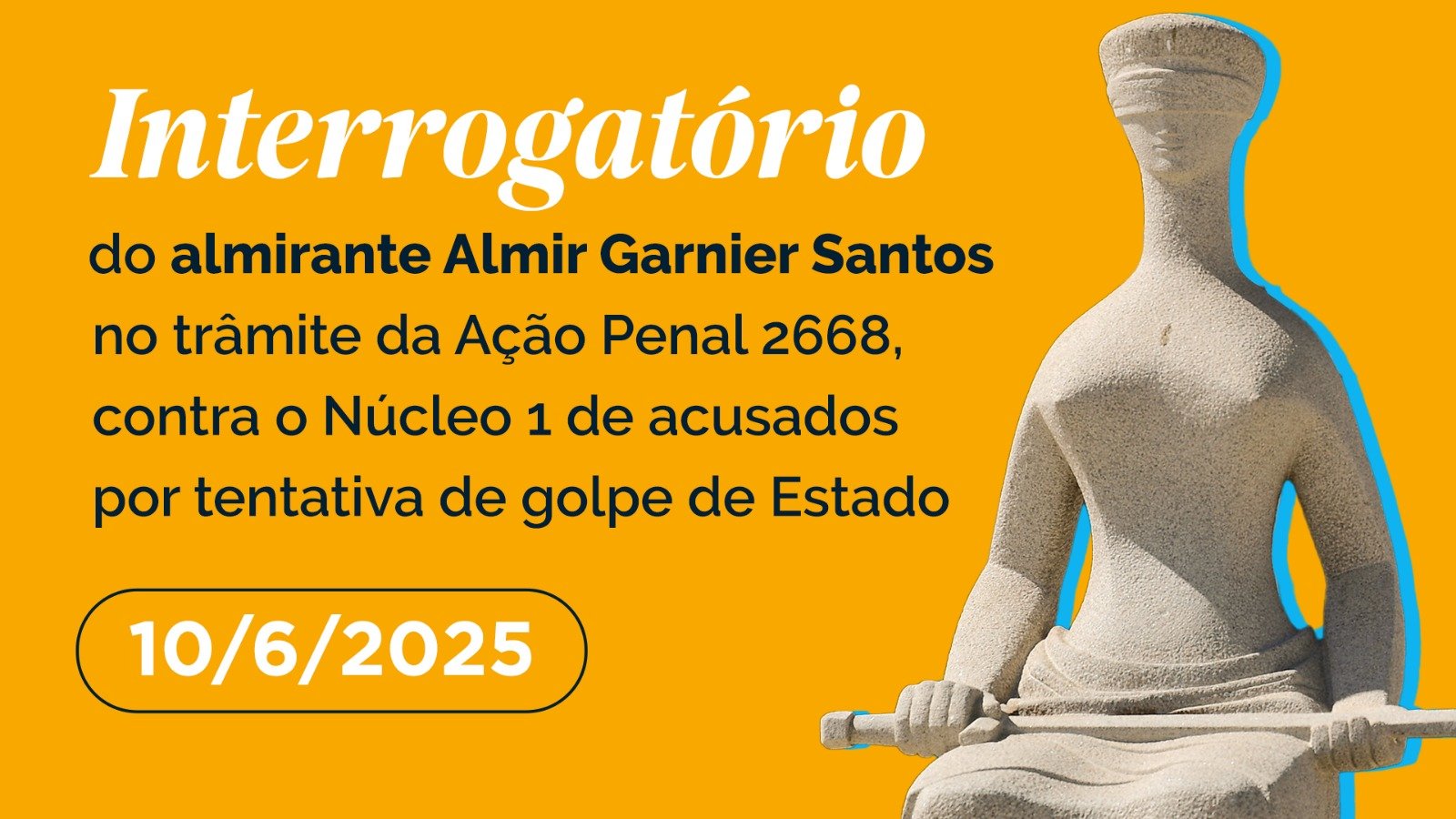 Terceiro réu na Ação Penal (AP) 2668 a ser interrogado pelo Supremo Tribunal Federal (STF), o ex-comandante da Marinha e almirante Almir Garnier foi ouvido na manhã desta terça-feira (10) em audiência na Primeira Turma. O depoimento de Garnier abriu o segundo dia de interrogatórios. Ele estava acompanhado de seu advogado, Demóstenes Torres.