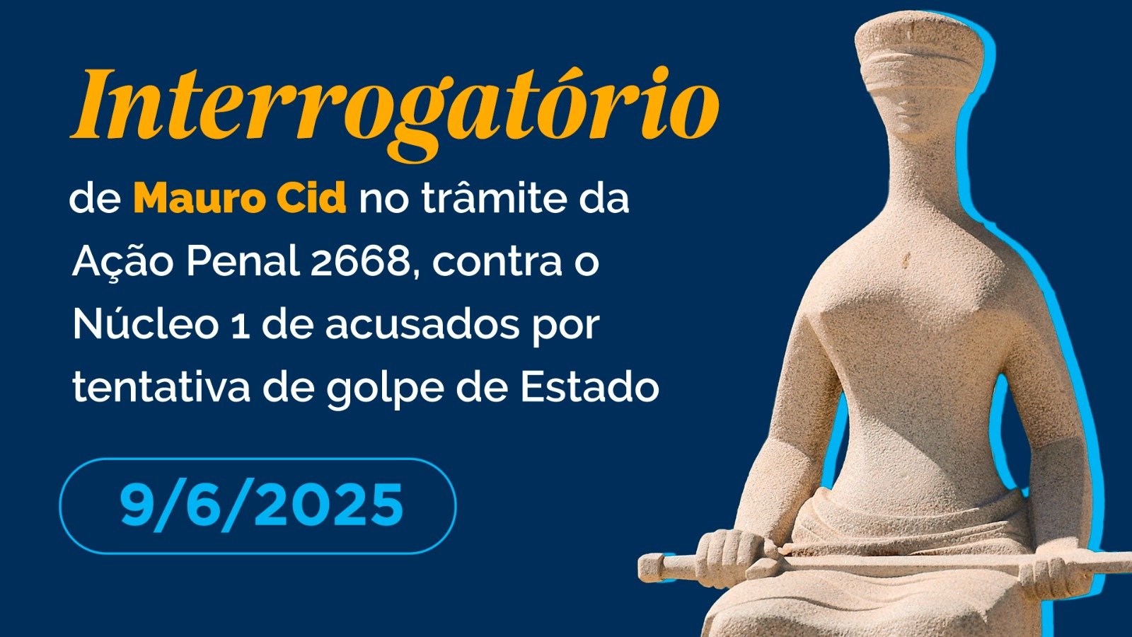 O Supremo Tribunal Federal (STF) interrogou nesta segunda-feira (9) o tenente-coronel Mauro Cid na condição de réu da Ação Penal (AP) 2668, que apura a tentativa de golpe de Estado denunciada pela Procuradoria-Geral da República (PGR).